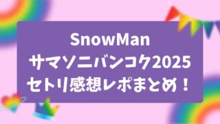 SnowMan SnowManサマソニバンコク2025セトリ感想レポまとめ! タイ・バンコクで開催される『SUMMER SONIC BANGKOK 2025』にSnow Manが出演しました。 日本からはSnow ManだけでなくBABYMETAL, CREEPY NUTSなど日本からのアーティストも数多く登場します... 2025.08.24 SnowMan