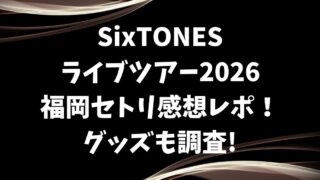 ライブ SixTONESライブツアー2026福岡セトリ感想レポ!グッズも調査! SixTONESライブツアー2026「MILESixTONES」がマリンメッセ福岡からはじまりました! 6周年記念ツアーの幕開けということでライブにいける方も行けない方もどんなツアーになるのか気になりますね。 こちらでは「SixTONESラ... 2026.01.07 ライブ