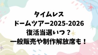未分類 タイムレスドームツアー2025-2026復活当選いつ?一般販売や制作解放席も! 新制タイムレス初のドームツアー「We’re timelesz LIVE TOUR 2025-2026 episode 1 FAM DOME」のtimeleszファンクラブ先行チケットの当落発表が11/7(金)にあり、残念ながら落選してしまっ... 2025.11.08 未分類
