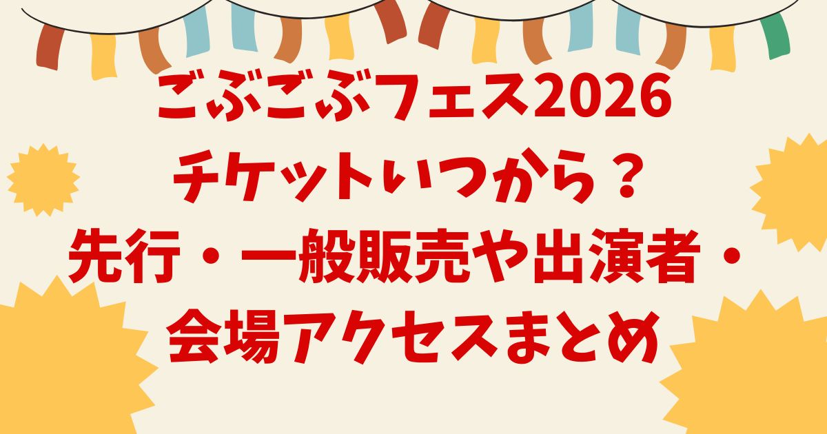 こちらでは「ごぶごぶフェス2026チケットいつから?先行・一般販売や出演者・会場アクセスまとめ」ということで紹介します。